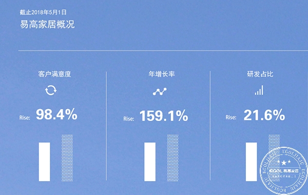 歷經(jīng)15年品牌積淀,易高家居逐漸成長為成熟的定制企業(yè),截止2018年5月,相較2017年易高家居增長率高達(dá)159.1%,如此迅猛的增占率讓易高為更多消費(fèi)者和行業(yè)所認(rèn)可,也奠定了其全屋定制一線品牌的地位。