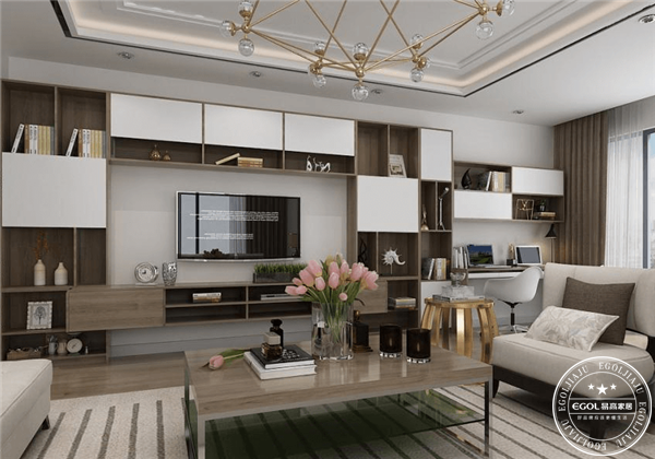 全屋定制客廳:客廳空間功能應(yīng)講求劃分合理、協(xié)調(diào)統(tǒng)一、過渡緩和。現(xiàn)代客廳一般被劃分為就餐區(qū)、會客區(qū)和學(xué)習(xí)區(qū)(或休息區(qū))等。會客區(qū)的通道要簡潔,空間要寬敞,光線要明亮,能夠達到溫馨、具有親和力是主旨。學(xué)習(xí)區(qū)(休息區(qū))應(yīng)比較安靜,靠近客廳某一隅,區(qū)域不必太大,營造舒適感卻很重要。整個客廳在視覺上力求明朗,可通過吊頂?shù)淖呦颉⒀b飾品的擺設(shè)來區(qū)分,但要注意客廳空間的和諧統(tǒng)一。