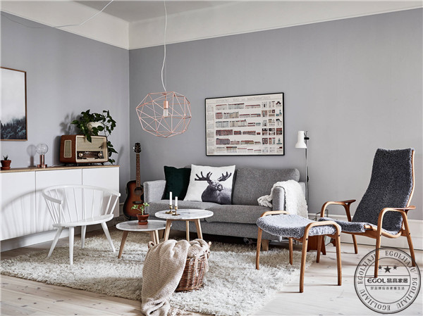 簡潔流暢的線條一定是所有北歐控們的最愛,家具的設(shè)計形態(tài)多數(shù)以直線形成,并且十分注重細節(jié)的處理。北歐國家在家具的色彩選擇上會使用大面積的純色,特別是中色系的黑白灰,經(jīng)常被用來作為空間的主色調(diào),營造一種低調(diào)的寧靜感,沉穩(wěn)而內(nèi)斂。