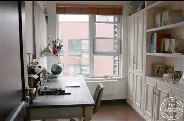 這是一個獨立的書房,工作學(xué)習(xí)的時候可以安靜的思考。里面的書桌和書柜都是獨立的,超大的書柜空間讓書都有了自己地盤。