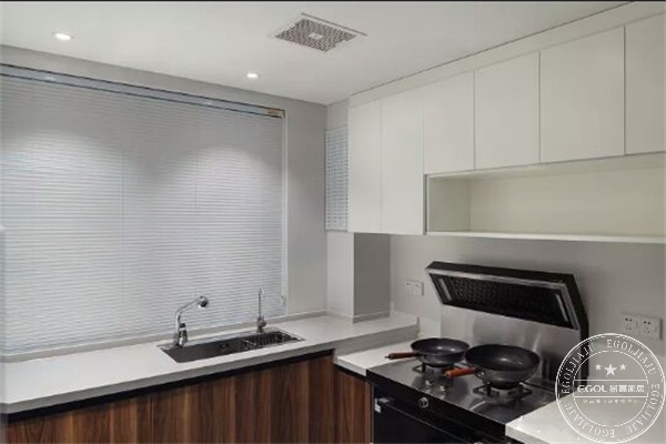 整體往南拉伸了200mm多,增加廚房?jī)?nèi)部開(kāi)間尺寸,灶臺(tái)與水槽落差,便于業(yè)主操作,暗藏推拉門(mén)的設(shè)計(jì),可以讓餐廳廚房融為一體,廚房干干凈凈做飯也舒心。