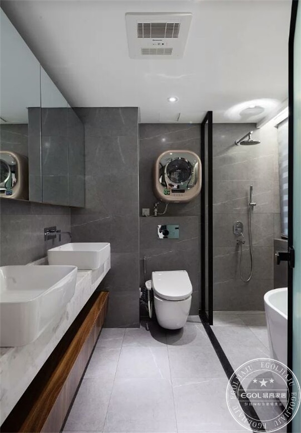壁掛馬桶,把原始衛(wèi)生間整體向南以及向東偏移部分尺寸,保留過(guò)道正常二人行走空間,壓縮臥室開(kāi)間尺寸,控制尺寸,讓原有的3.8平方米的面積擴(kuò)大量5.5平方米通過(guò)改造的空間,增加浴缸雙面盆,并且超出我的需求增加了沐浴區(qū) 雙面盆設(shè)計(jì)早上洗漱更加方便,集中洗澡的區(qū)域,擋水條隔離大部分水源外流,長(zhǎng)條隱形地漏可以加大排水量。