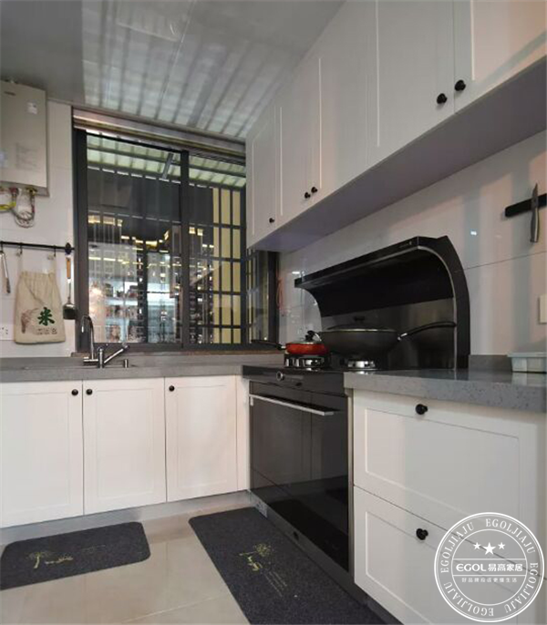 原先廚房大理石做的,感覺很單??;家居設(shè)計(jì)師果斷建議換成整體定制櫥柜,美觀實(shí)用兩不誤!