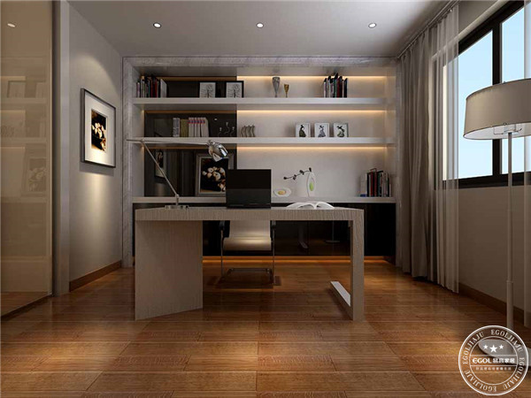 人們走進(jìn)書房映入眼簾印象最深一般都是書房的設(shè)計(jì)色調(diào),因?yàn)轭伾亲钅艽碳じ泄僖曈X的,書房的色彩一般不適宜過于耀目,但也不適宜過于昏暗,否則對(duì)眼睛都會(huì)產(chǎn)生不好的影響。書房內(nèi)的裝修色彩以淡綠、淺棕、米白等柔和色調(diào)的色彩較為適合。但您若是從事需要外部環(huán)境刺激而產(chǎn)生創(chuàng)意的工作,那么不妨讓鮮艷的色彩引發(fā)靈感。