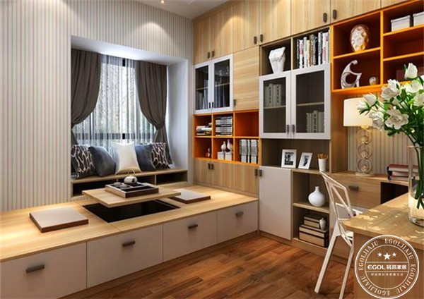 榻榻米可以設計靠近窗邊,這樣可以欣賞窗外的好景,窗戶打開可以吹著小風,曬著太陽,可以躺在床上,享受鳥語花香帶來的舒適體驗,榻榻米的下方設計的矮柜可以收納我們的物品,這樣房間整體干凈整潔,而且我們可以榻榻米和書桌一體話設計,或者和其他家居一體話設計,承擔著不同的使用功能。