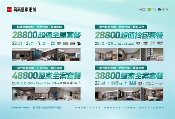易高整家定制為消費者提供一體化整家設(shè)計、一體化產(chǎn)品交付、一站式售后服務(wù),滿足多樣化需求。基于此,易高推出多種裝修套餐,以滿足不同預(yù)算的客戶。