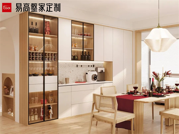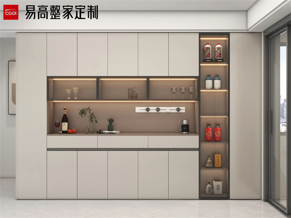 在設(shè)計(jì)餐邊柜之前,首先要明確它的主要用途。不同家庭對餐邊柜的需求各不相同,但通常包括收納功能、展示功能和操作臺功能。在收納方面,可以設(shè)計(jì)抽屜或?qū)影宕娣挪途?,增設(shè)酒格或恒溫酒柜滿足藏酒需求,同時(shí)利用封閉柜體收納紙巾、調(diào)味品等雜物。展示功能則可以通過開放格或玻璃柜門實(shí)現(xiàn),用于擺放裝飾品、書籍或收藏的餐具。如果餐廳空間允許,還可以在餐邊柜上方預(yù)留臺面,方便擺放咖啡機(jī)、飲水機(jī)等。