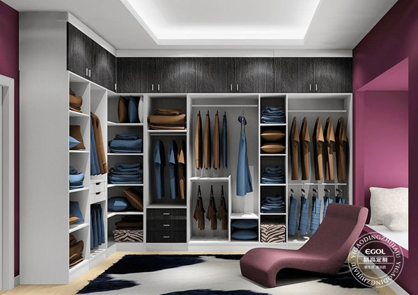 這種衣柜一般出現(xiàn)在封閉環(huán)境下的衣帽間,因?yàn)橐旅遍g的衣柜一般不用安裝門,節(jié)省了一筆開銷,挑選衣服時(shí)也比較一目了然,缺點(diǎn)就是可能不好好整理的話,進(jìn)入衣帽間就會覺得比較亂了。