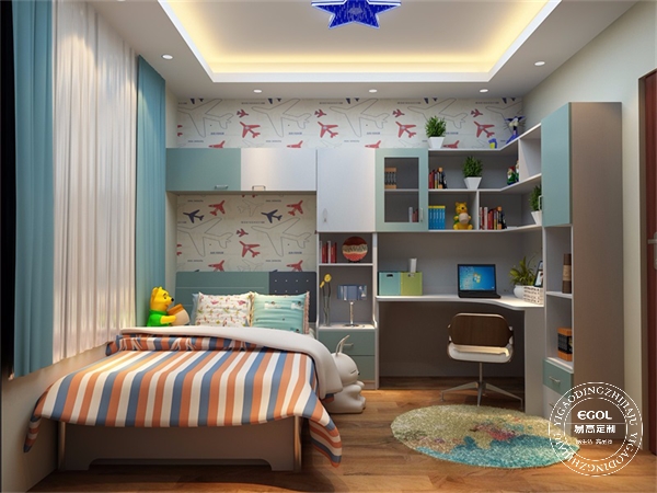 家具選購顏色也是很重要的一點(diǎn),相對來說顏色深類似紅色、黃色會讓人莫名心情煩躁,而藍(lán)色總給人以清涼舒適的感覺,那么易高定制家居今天就來介紹下這款藍(lán)色清爽兒童房設(shè)計(jì)效果圖|兒童房定制家具圖片。