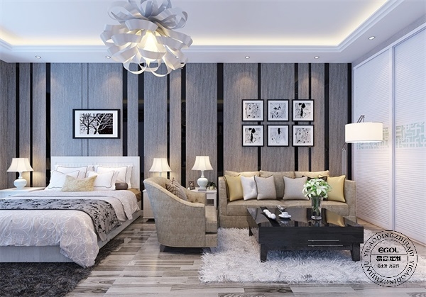 壁紙、地毯等軟裝也是必不可少的,臥室與客廳這面墻的壁紙讓整體空間看起來大方利落,小小的空間因為有定制家具與軟裝的存在有著獨特的魅力,對于“單身貴族”來說,這樣一個現(xiàn)代簡約的單身公寓是非常好的選擇。