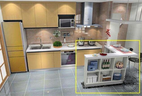 當(dāng)廚房只有一盞吸頂燈時(shí),人站立在下面往往是背光,這時(shí)候在吊柜下設(shè)計(jì)一個(gè)感應(yīng)式led燈就非常有必要了。