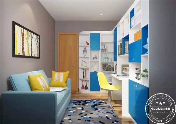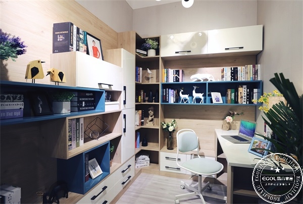 幼兒時(shí)期通常是書房和房間一體,這時(shí)候多開發(fā)孩子腦洞,培養(yǎng)孩子的色彩感知能力和動(dòng)手能力,因此書房空間自然采光要充足,色彩搭配合理,把創(chuàng)造快樂空間的主動(dòng)權(quán)交給孩子。