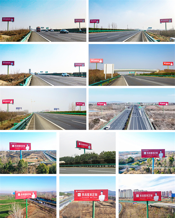 廣告牌在高速核心路段、高鐵站及機場等地形成多維視覺聯(lián)動,通過全天候展示,精準對話中高端消費人群,高效傳達品牌實力,盡顯定制家居標桿品牌風范。
